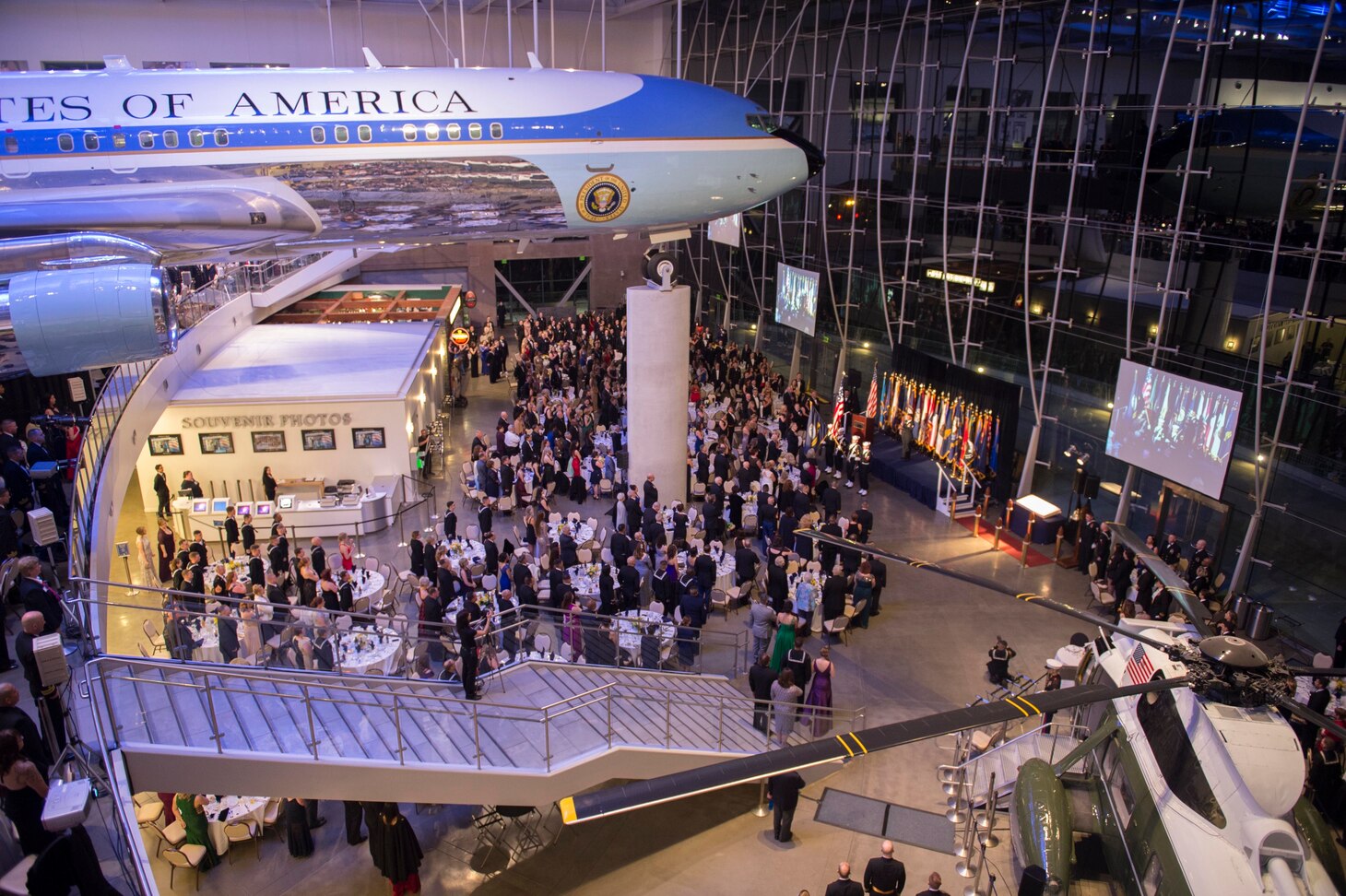 Seabees, service members and civilians observe colors during the 75th Annual Seabee Ball at the Ronald Reagan Presidential Library in Simi Valley, California, on Feb. 25, 2017. The ball was held to commemorate the 75th Anniversary of the U.S. Navy Seabees, 150th Anniversary of the Civil Engineer Corps, and the 175th Anniversary of Naval Facilities Engineering Command in 2017. (Photo by Chief Mass Communication Specialist Lowell Whitman/170225-N-HA376-028)